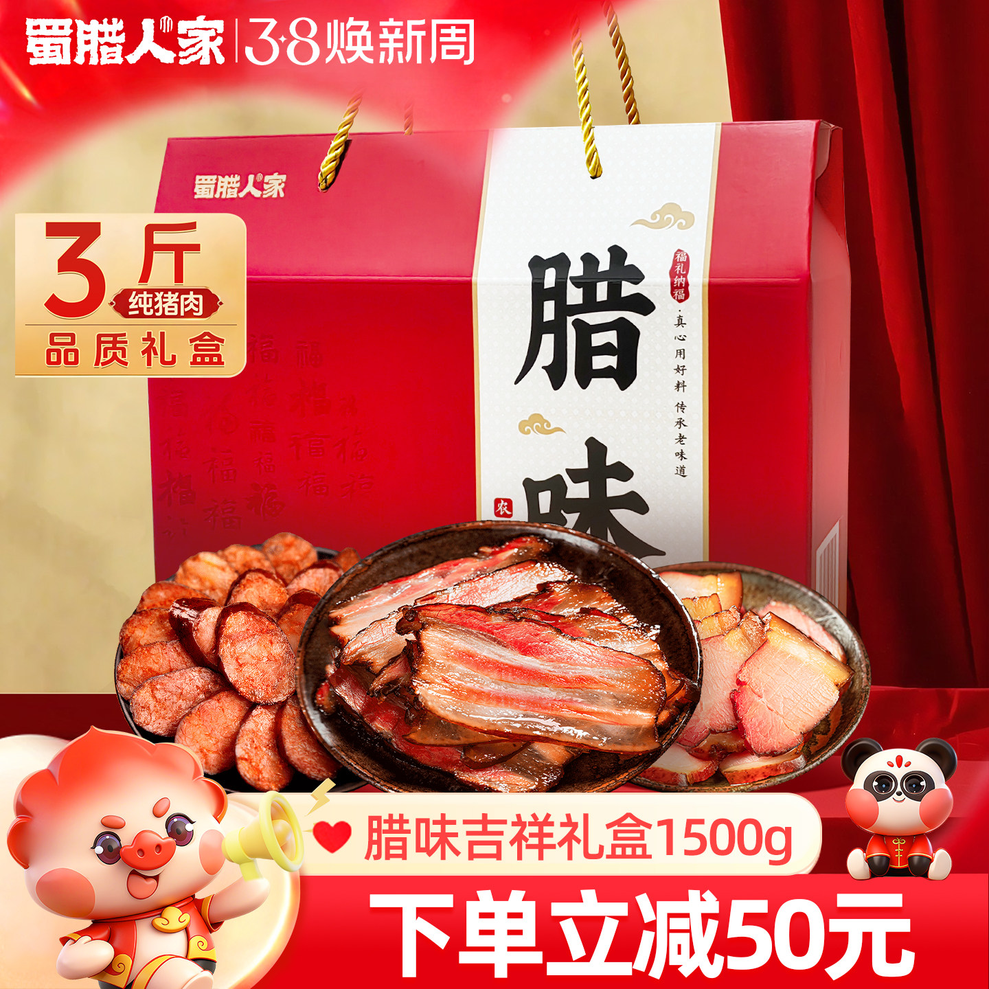 蜀腊人家腊味礼盒1500g 四川特产腊肠五花腊肉香肠年货礼盒装团购