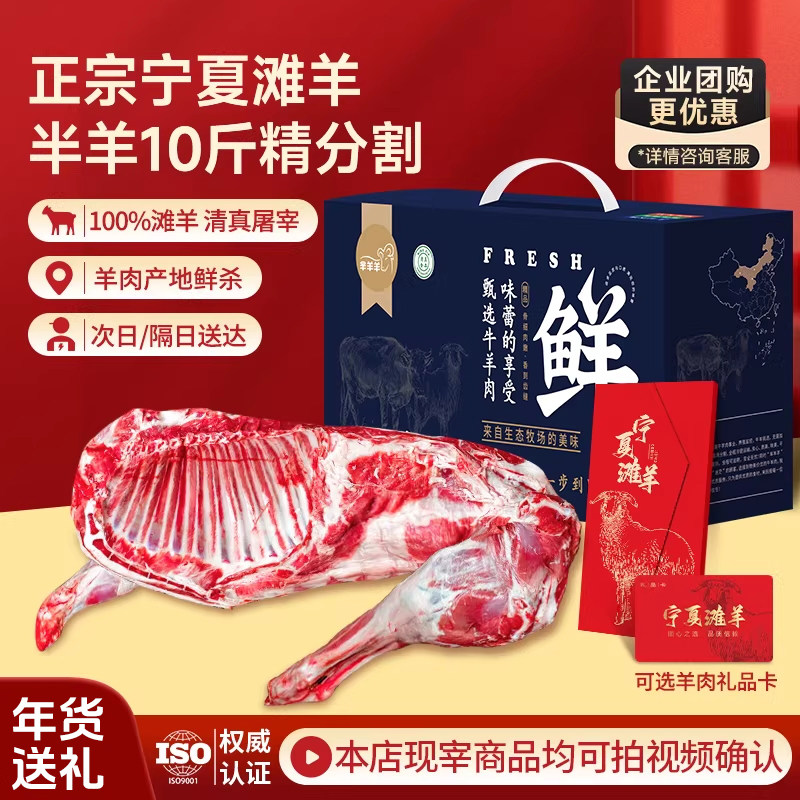 宁夏滩羊肉礼盒新鲜现杀半只羊10斤羊腿羊排烧烤火锅食材年货送礼