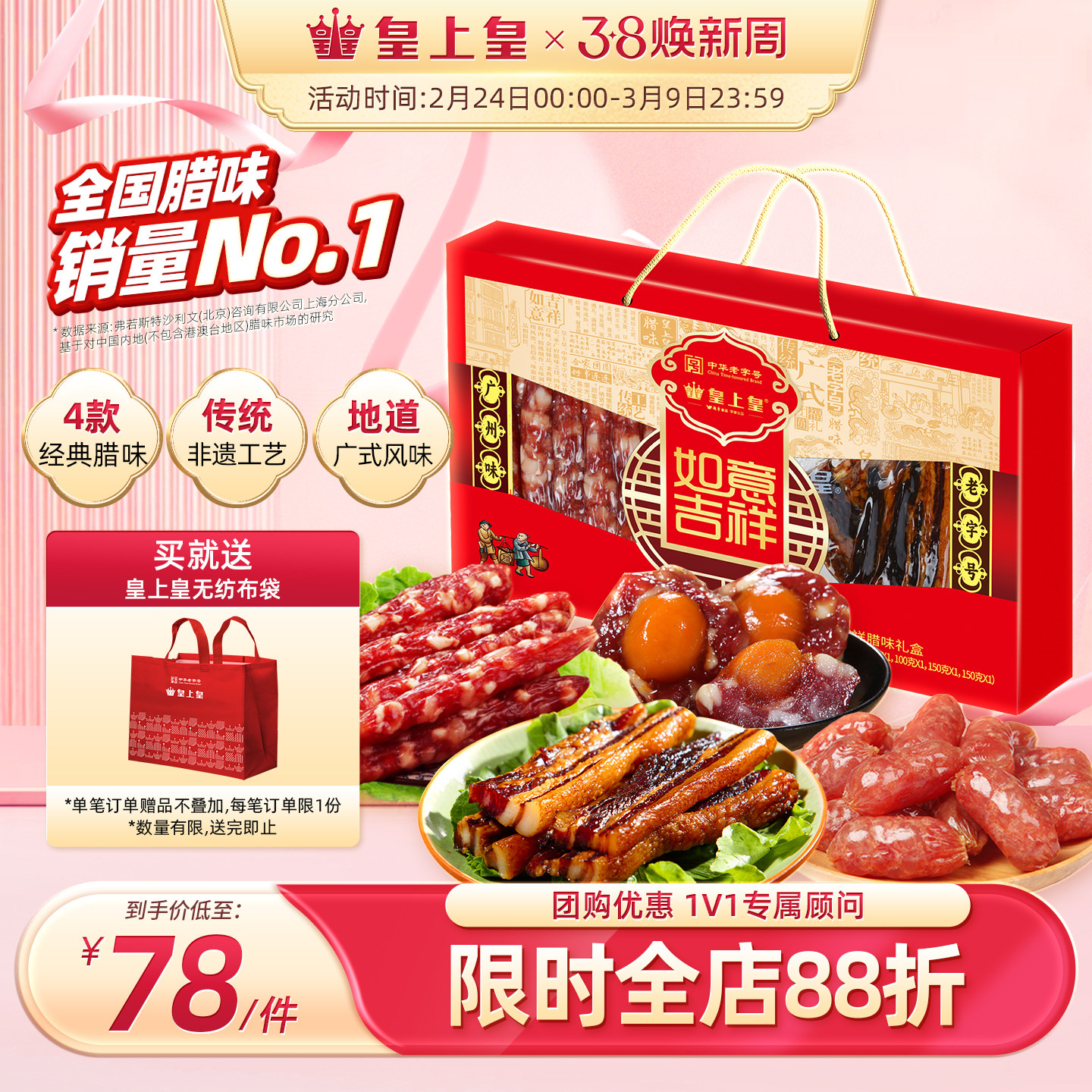 皇上皇如意吉祥礼盒腊肠腊肉500g广东特产团购年货送礼囤货广式