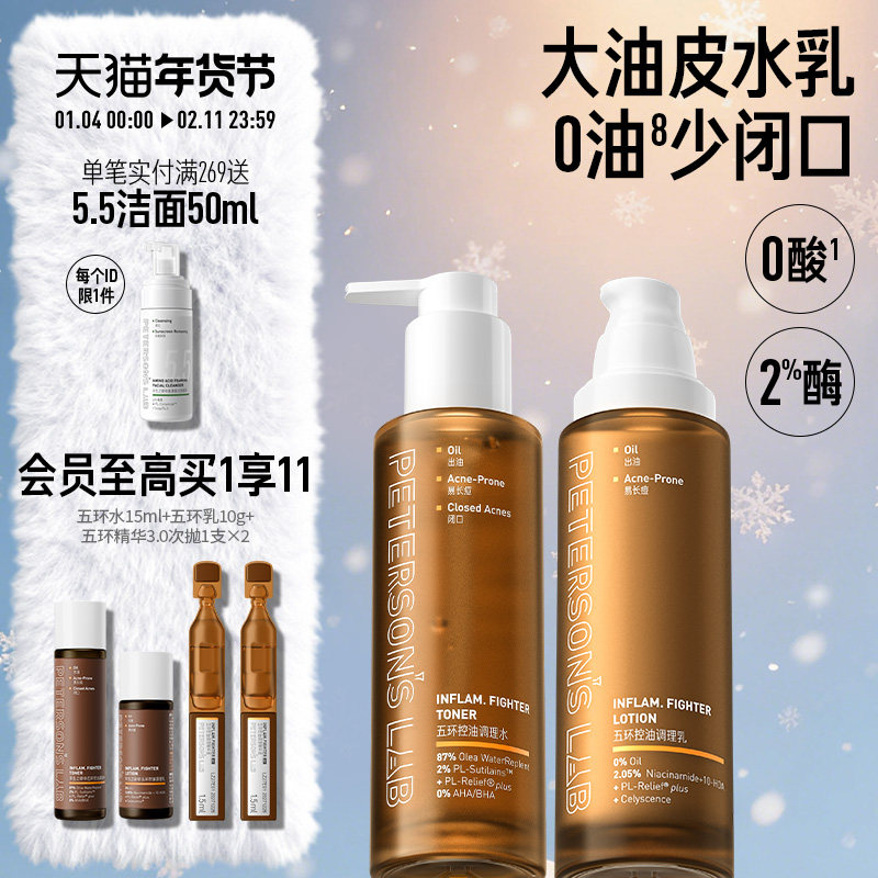 毕生之研五环油皮水乳套装油痘油敏肌控油精华祛痘收缩毛孔男士女
