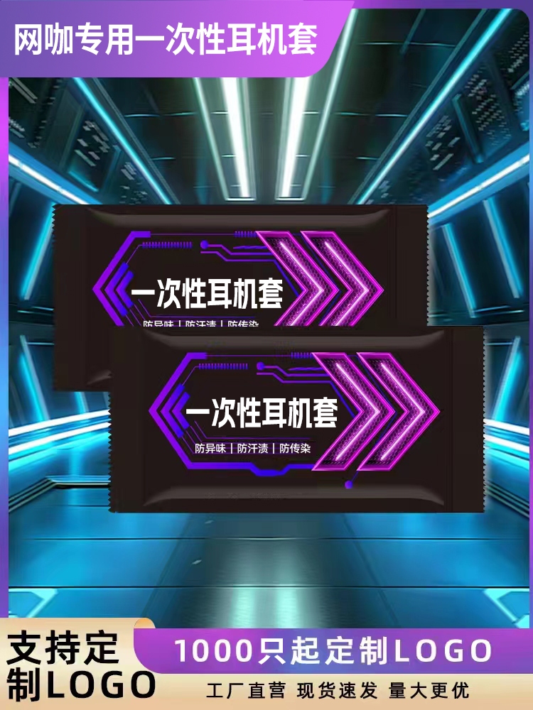 一次性耳机套2000只网吧无纺布防尘防汗网咖头戴式保护套定制logo独立包装便携小包批发麦克风话筒保护罩