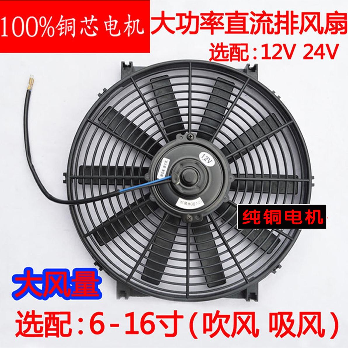 14寸24v电子扇水箱散热加装超薄大功率汽车吸吹风12v改装80W风扇
