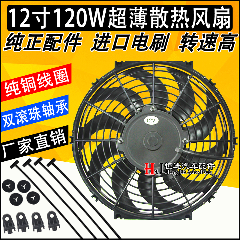 12寸进口电子扇超薄120W大功率汽车空调加装冷藏车散热风扇电子扇