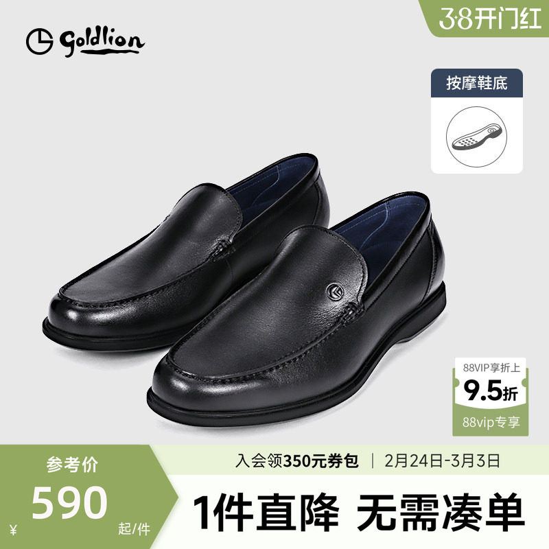 金利来皮鞋男款公务一脚蹬冬季休闲防滑按摩底商务正装真皮鞋子男
