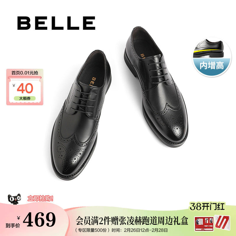肖战同款百丽男鞋商务内增高真牛皮鞋男士结婚鞋布洛克正装7TN01A