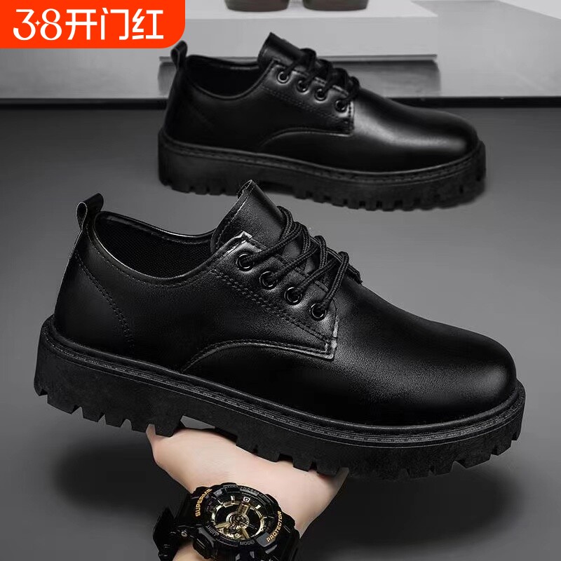 男士皮鞋男款秋季2024休闲商务新款英伦风大头潮鞋马丁靴男鞋防水