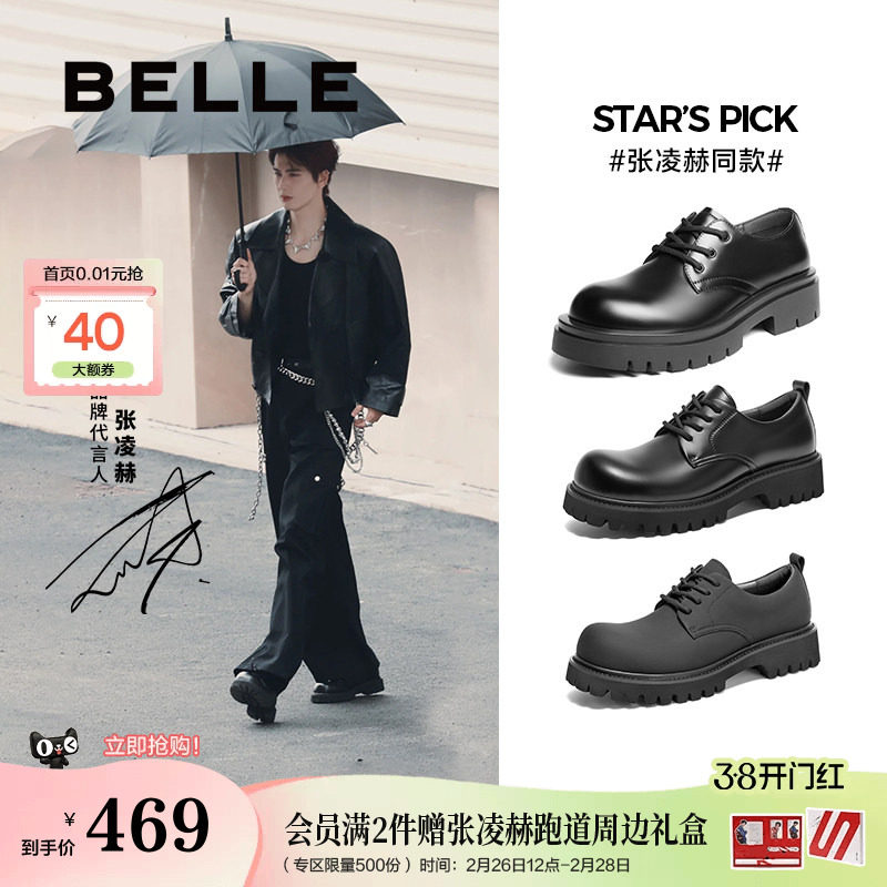 张凌赫同款百丽男士休闲商务皮鞋男26新牛皮厚底德比通勤鞋A2274