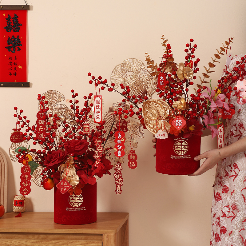 结婚装饰花瓶仿真花客厅桌面摆件订婚宴布置仪式新婚礼物备婚用品