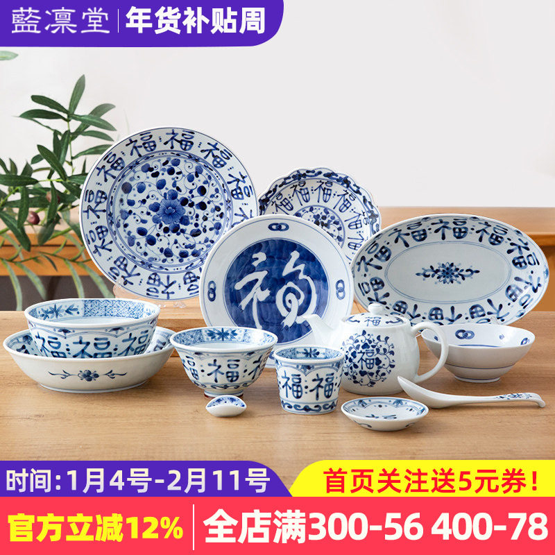 蓝凛堂福字餐具日本进口碗陶瓷盘子套装 家用日式钵面碗福盘福碗