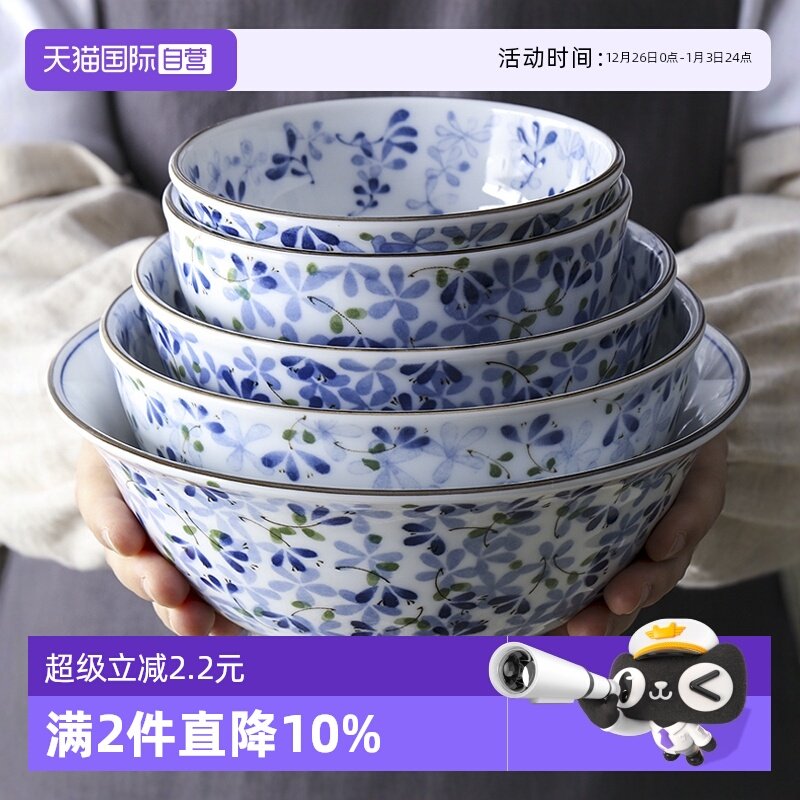 【自营】美浓烧日本进口陶瓷餐具小蓝芽饭碗寿司菜盘子碟拉面汤碗