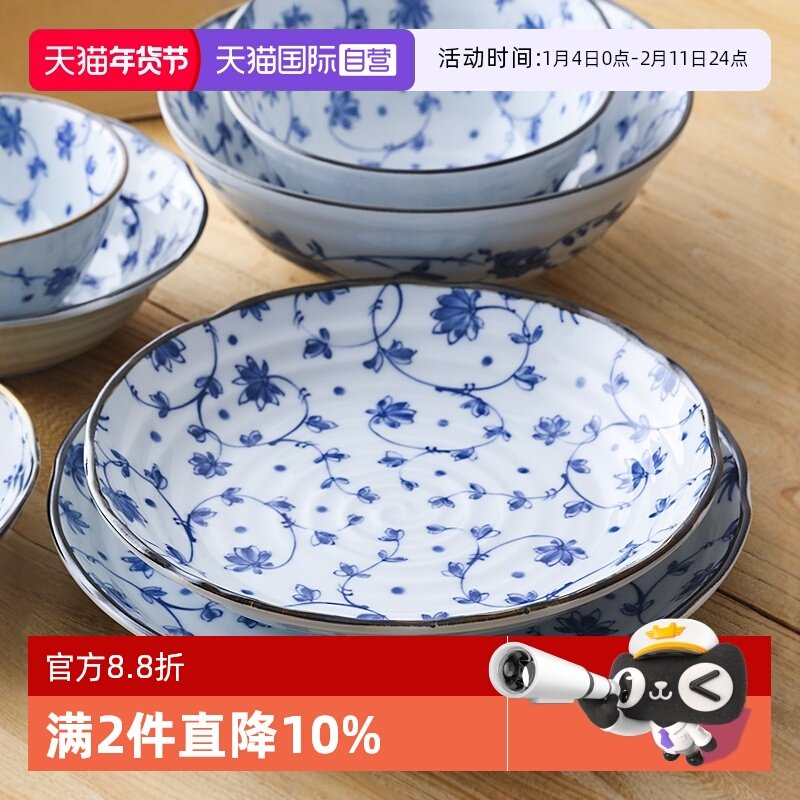 日本进口美浓烧花集陶瓷碗盘餐具日式米饭碗深菜盘骨碟甜品碗汤碗