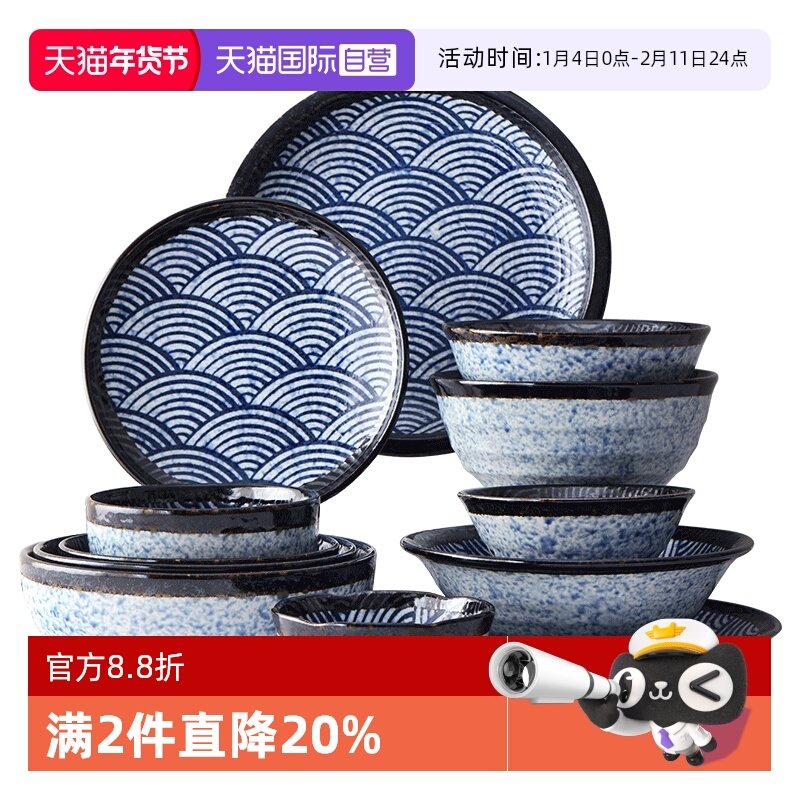 【自营】青海波日本进口陶瓷碗餐具果碟盘子小碗日式沙拉面汤饭碗
