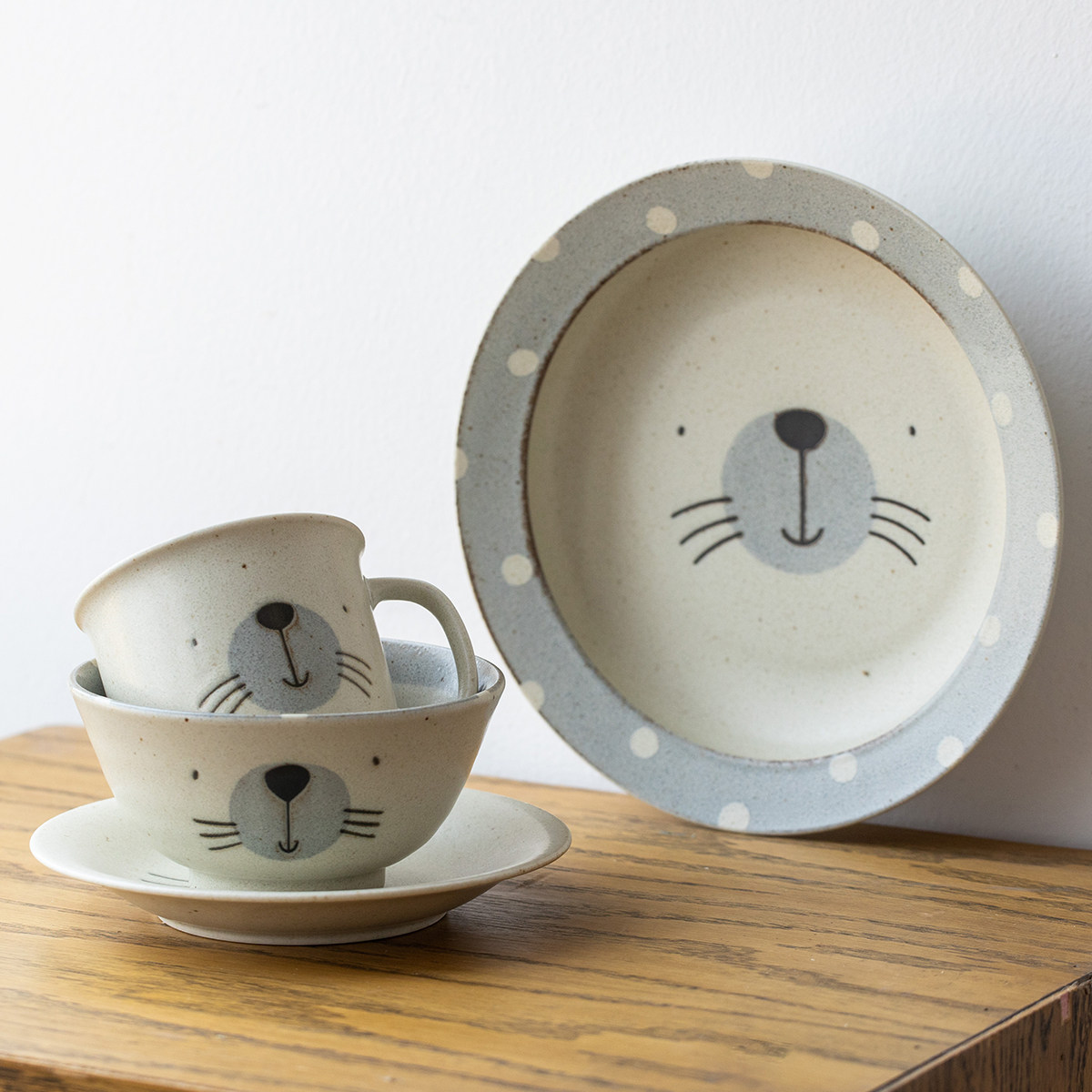 日本进口可爱刺猬海豹米饭碗早餐圆盘餐具套装日式咖啡杯咖喱饭盘