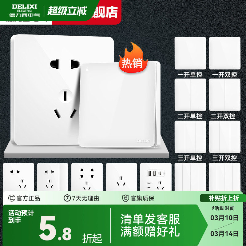 德力西官方旗舰店827开关插座面板空调16a墙壁一开五孔86型暗装白