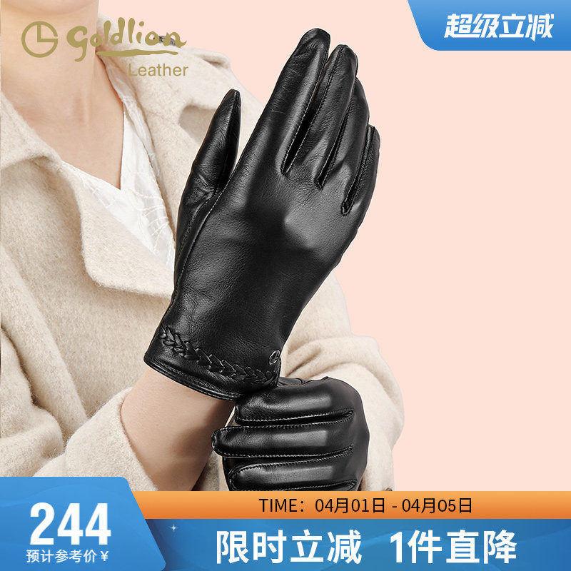 金利来女士羊皮柔软手套秋冬保暖新款轻奢真皮防寒防风触屏手套潮