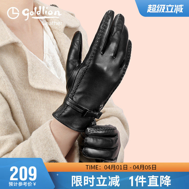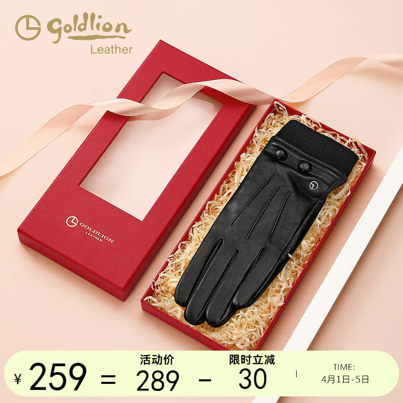 金利来新款简约羊皮手套女冬季户外防风防寒加绒保暖真皮触屏手套