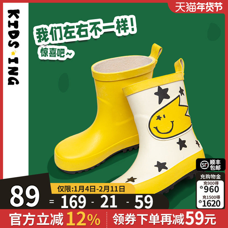 kidsing儿童雨靴春季宝宝水鞋男童女中大童软底防滑雨鞋胶鞋