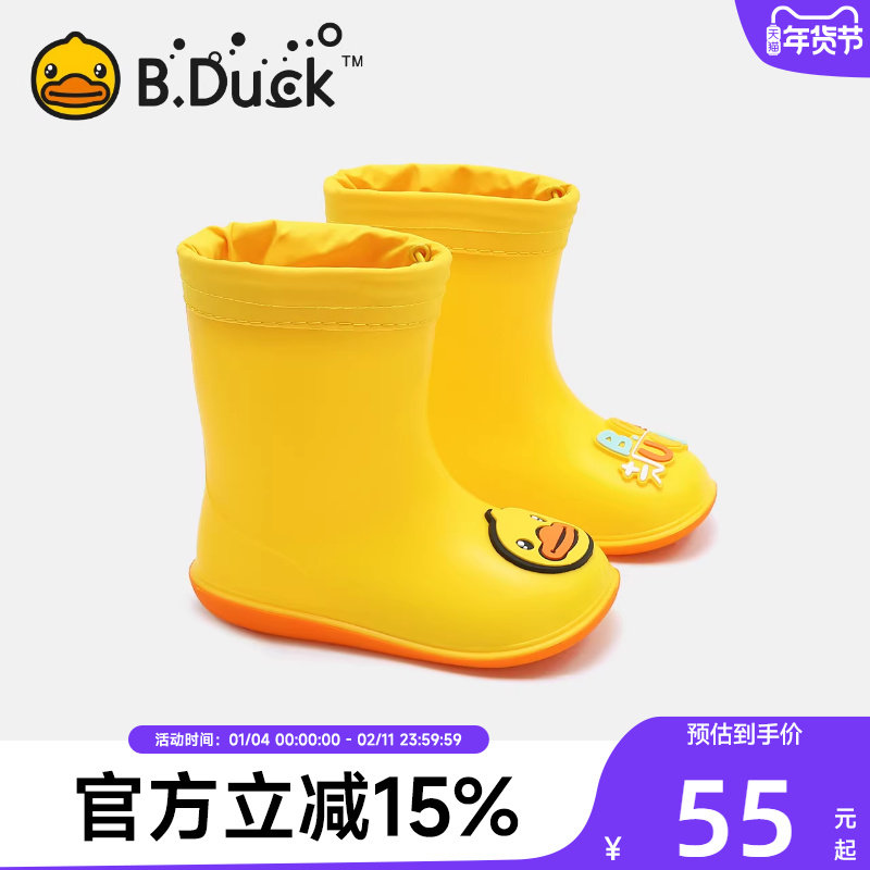 B.Duck小黄鸭童鞋儿童雨靴春秋季新款男童防水雨鞋女宝宝水鞋潮