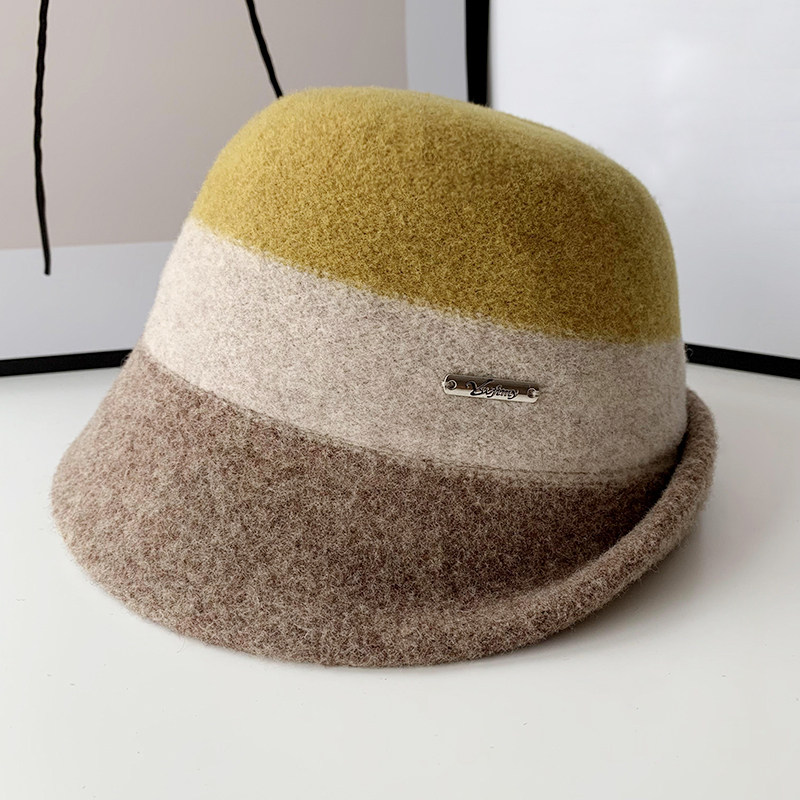 帽子女秋冬新款拼色保暖羊毛呢卷边盆帽赫本风渔夫帽优雅百搭礼帽