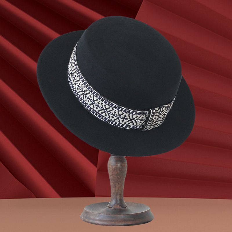 设计师定制宝藏万年黑色复古法式平顶爵士帽礼帽女秋冬毛呢帽子潮