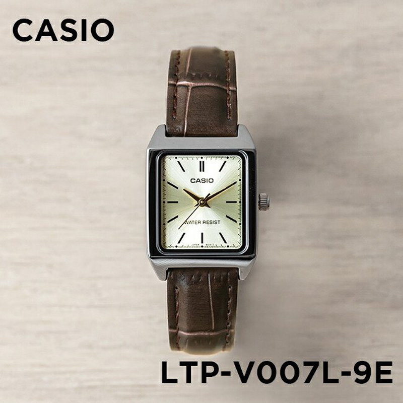 卡西欧手表女CASIO LTP-V007L-7E2 学生防水表棕皮带白盘小方表