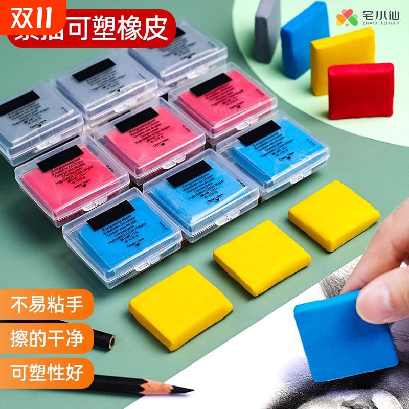 学生素描高光像皮擦超干净橡皮泥可塑性盒装无屑美术专用软象皮擦动漫彩色绘画画像笔擦可塑橡皮可拉丝软橡皮