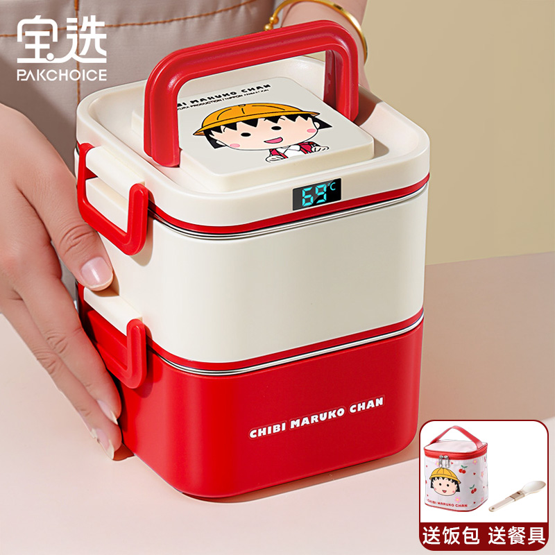 樱桃小丸子保温饭盒可微波炉加热上班族便当盒不锈钢分格带饭餐盒