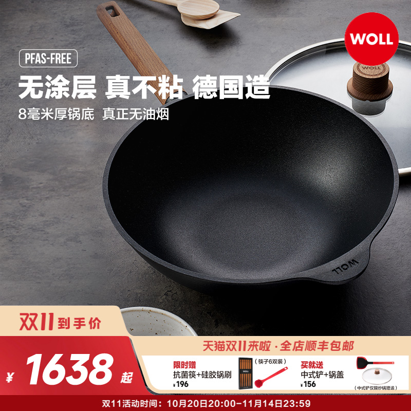 【2024新品】WOLL德国进口不粘锅无涂层无油烟炒菜家用电磁炉炒锅