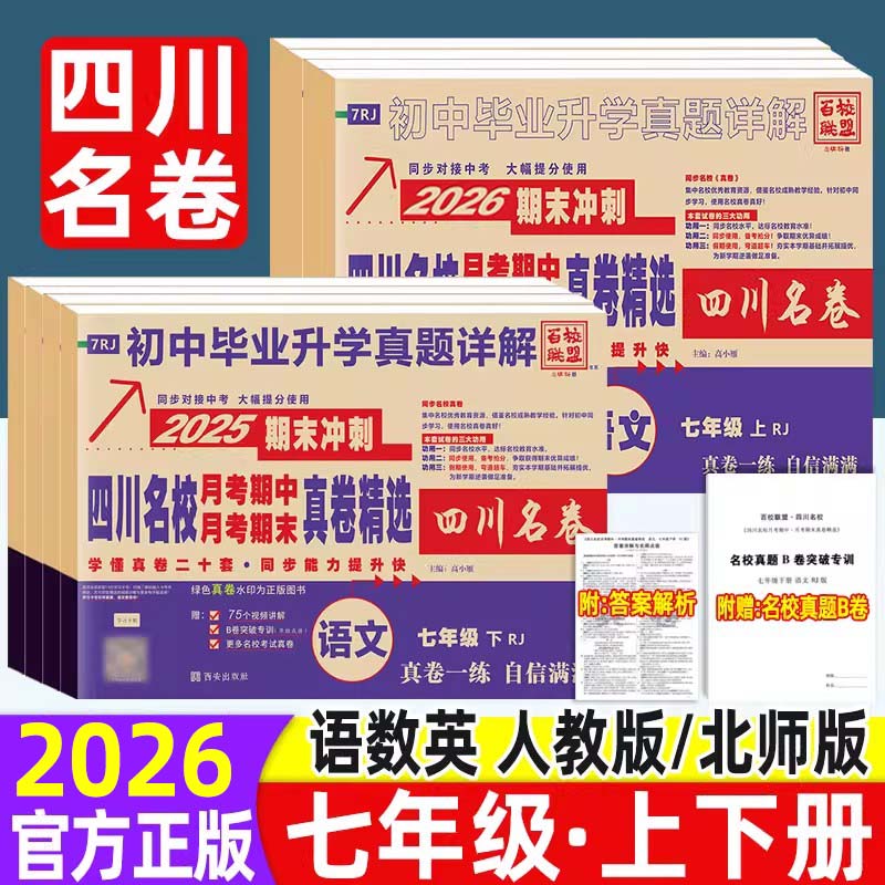 2025/2026四川名校真卷七年级下册语文数学英语上册试卷人教版北师版初一初二初中四川十大名校月考期中期末真卷精选试题卷子