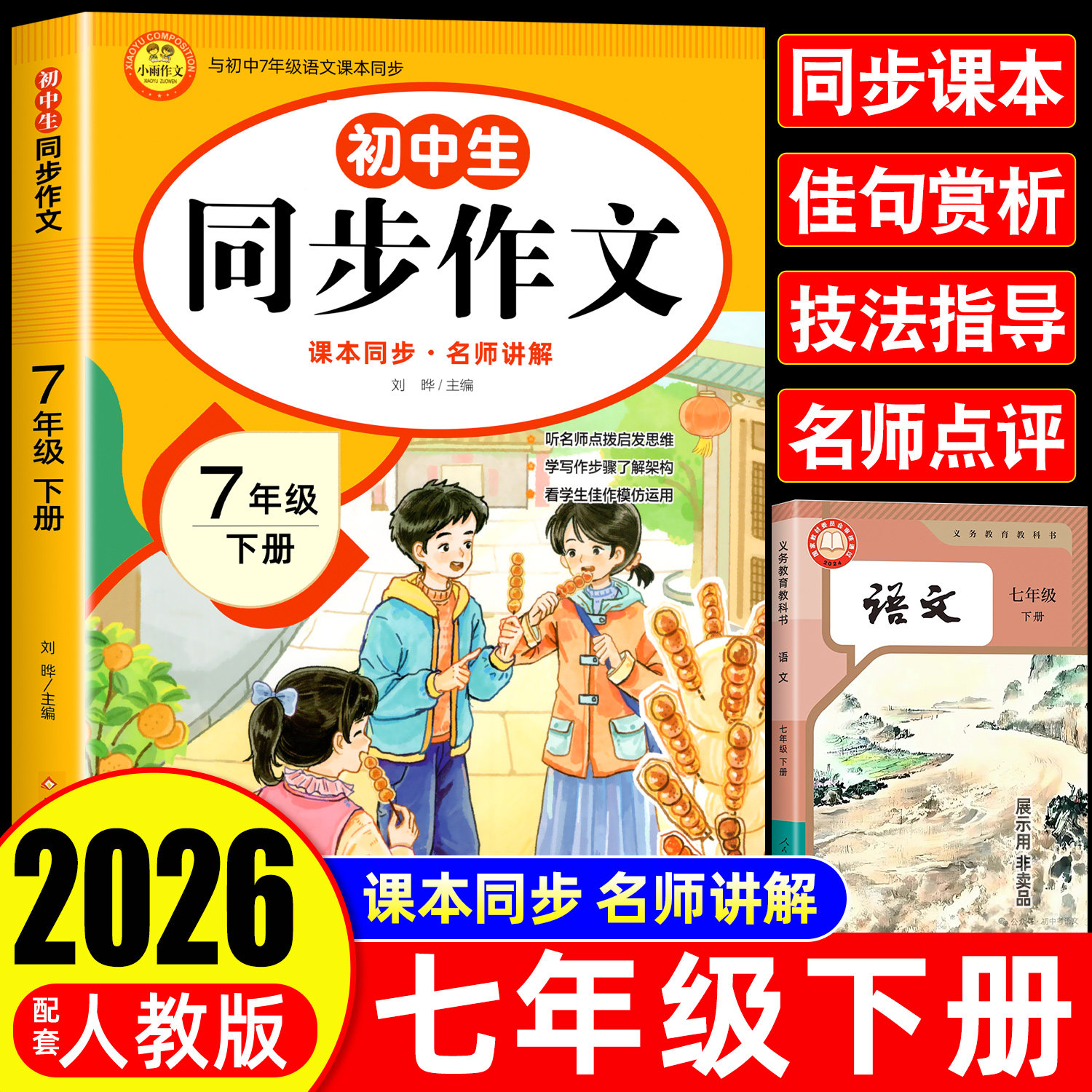 2026新版七年级下册语文同步作文人教版 初一7上学期教材书同步练习册优秀作文高分范文精选满分作文辅导大全中学生写作技巧书籍