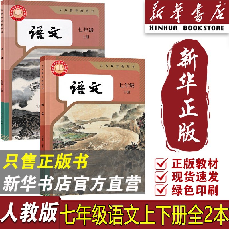 【新华书店正版】部编版全国统一版本初中7七年级上册语文+七年级下册语文全套2本人教版初一7年级上下册语文书课本教科书