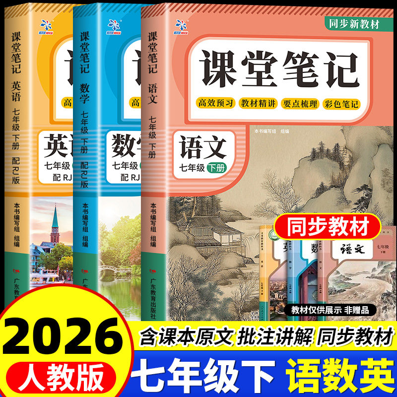 【2026新版】课堂笔记七年级下册语文数学英语全套7下初一人教版初中同步课本新教材书全解预习详解黄冈随堂笔记初中生zj