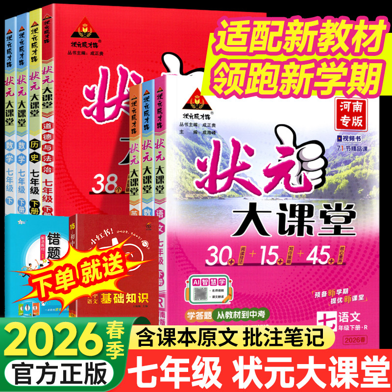 2026春初中状元大课堂七年级下册语文英语人教版数学北师华师政治历史初一7上册课本全套课堂笔记教材同步讲解教材解读辅导资料书