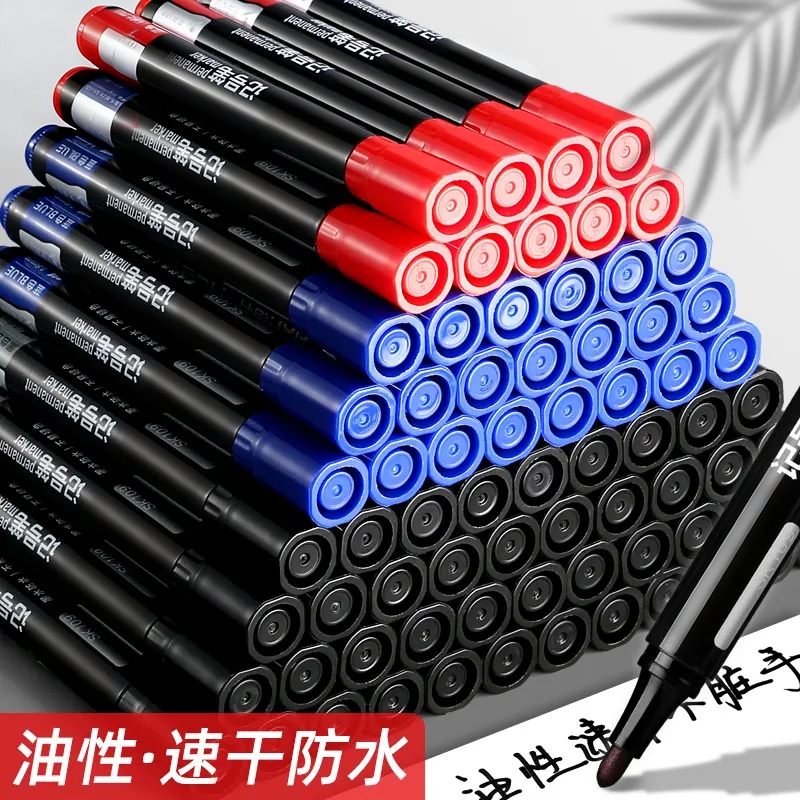 记号笔防水防油不掉色100支装黑色油性大头笔粗头办公文具批发工地快递标记马克勾线笔红色速干加墨蓝色瓷砖