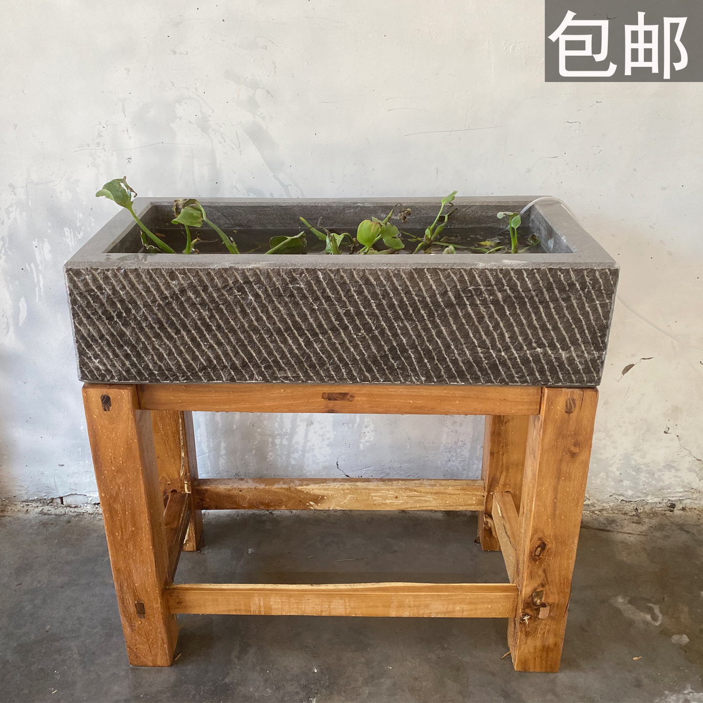 青石槽流水鱼缸长方形庭院户外花盆木架石雕户外假山仿古洗手造景