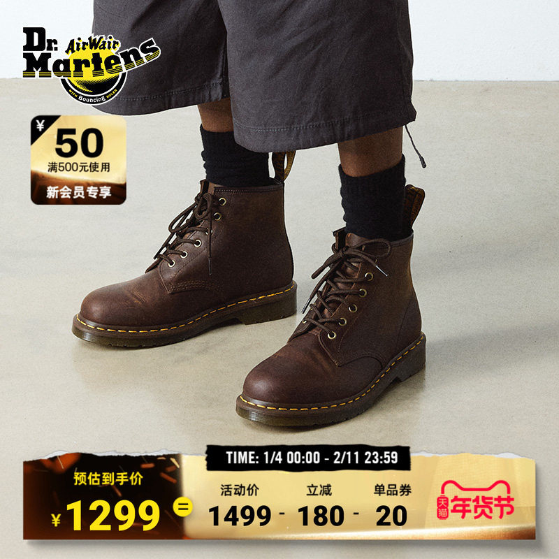 Dr.Martens马丁博士101 Crazy Horse秋冬款百搭疯马皮短靴马丁靴