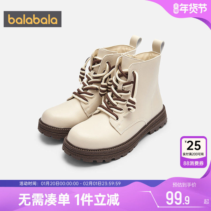 巴拉巴拉女童马丁靴中大童皮靴秋冬款童鞋儿童白色鞋子宝宝靴子潮