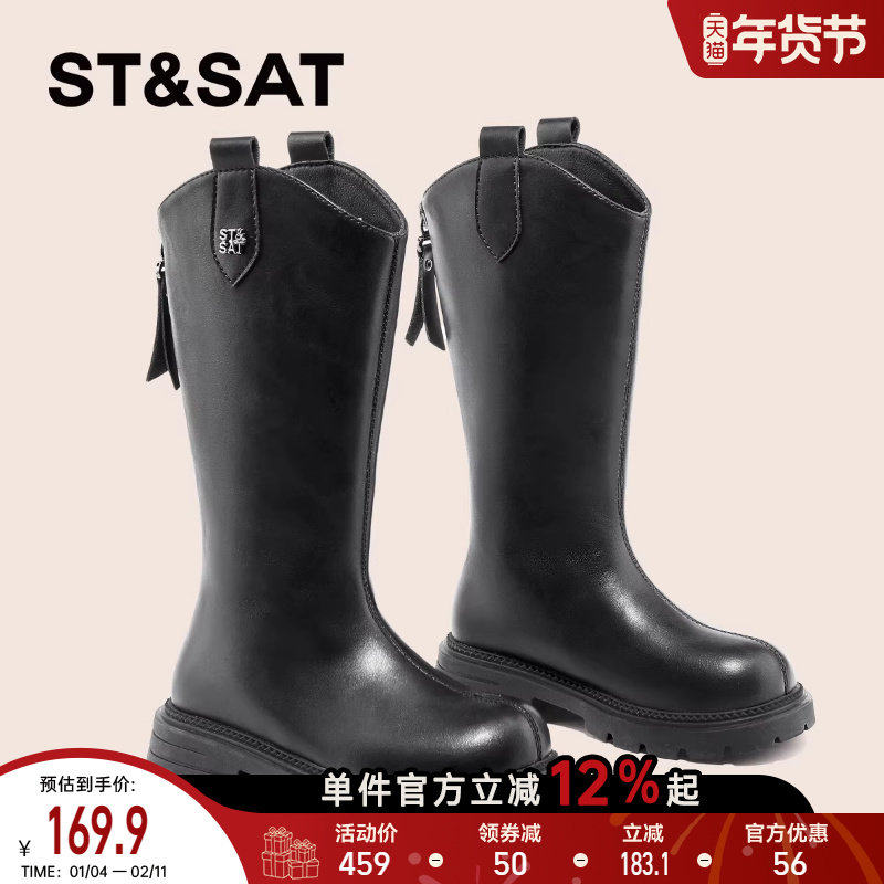 星期六女童靴子2025新款秋冬款儿童长筒靴中童厚底马丁靴女孩皮靴
