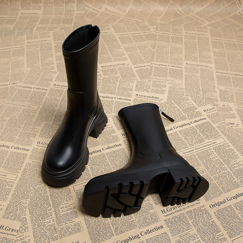 小个子增高中筒靴英伦风厚底马丁靴女2025秋冬款前拉链高跟时装靴