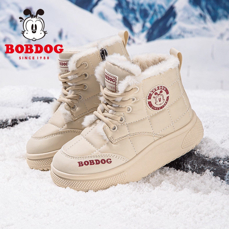 巴布豆童鞋男童马丁靴冬款2025年新款防水加绒女童棉鞋儿童雪地靴