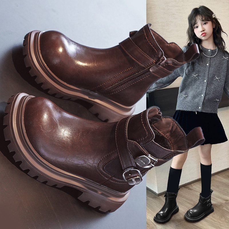 女童鞋儿童真皮短靴2025秋季马丁靴冬款英伦公主皮靴宝宝加绒棉靴