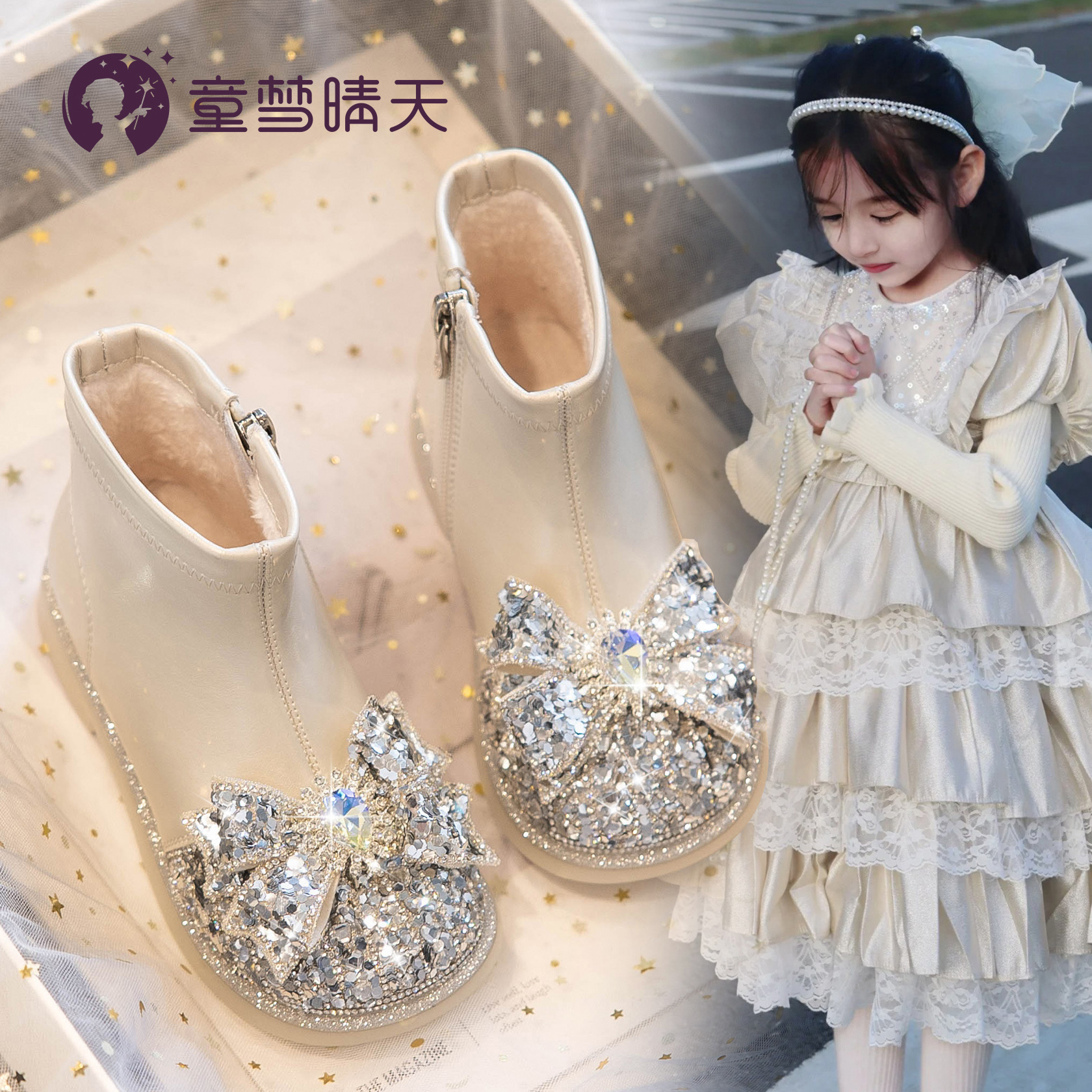 水晶鞋加绒女童公主鞋2025新款鞋3儿童马丁靴冬款鞋子女宝宝短靴6