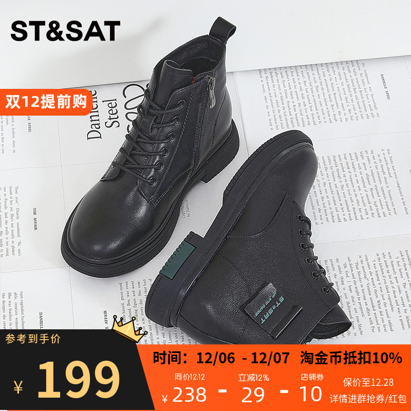 森达马丁靴女鞋冬款商场同款超软羊皮厚底机车风休闲短靴XCM01