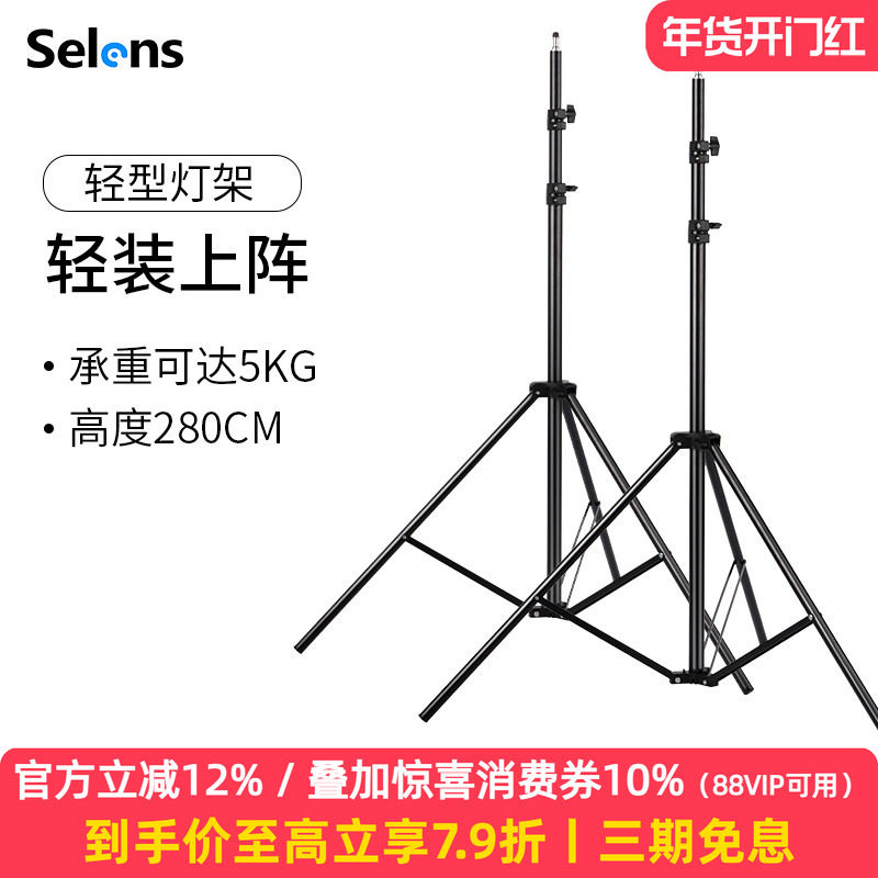 Selens/喜乐仕2.8米摄影闪光灯灯架影室三脚架直播外拍补光灯灯架便携三脚架折叠伸缩三角支架摄影灯影棚器材