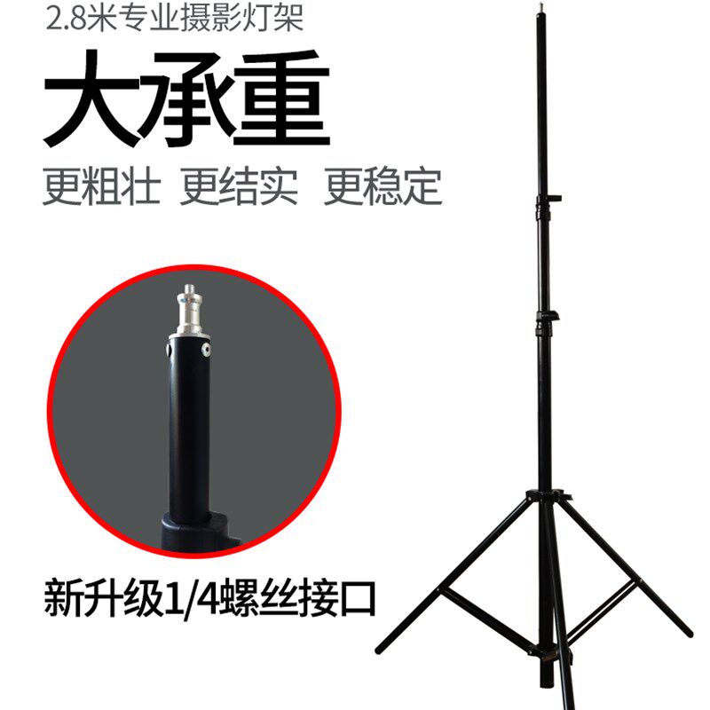 适用神牛摄影灯2.8米灯架 补光灯三脚架 不锈钢加固超大承重 闪光灯灯棒支架 带弹簧缓冲 户外便携露营灯架子