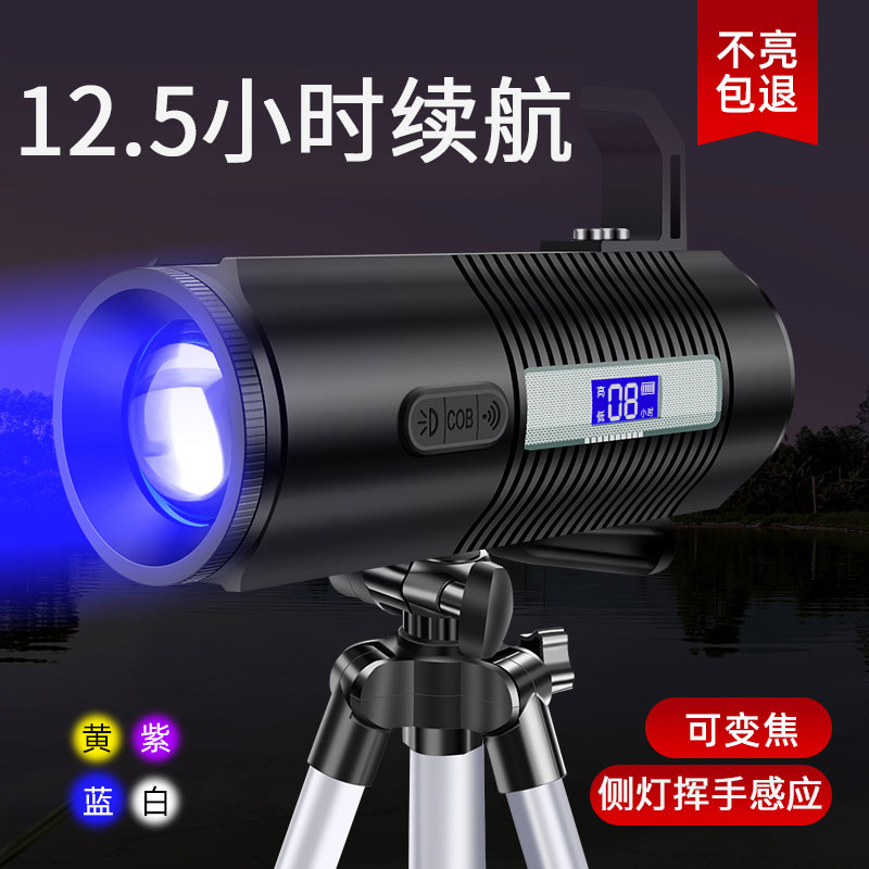 钓鱼强光夜钓灯激光灯专用蓝光氙气灯远射台钓灯紫光超长续航电筒