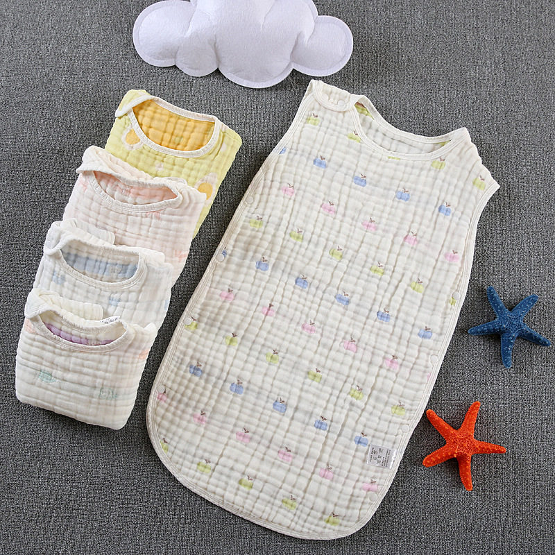 双层纱布九分袖睡袋 婴儿A类有机纱超薄 宝宝分腿防踢被夏季竖开