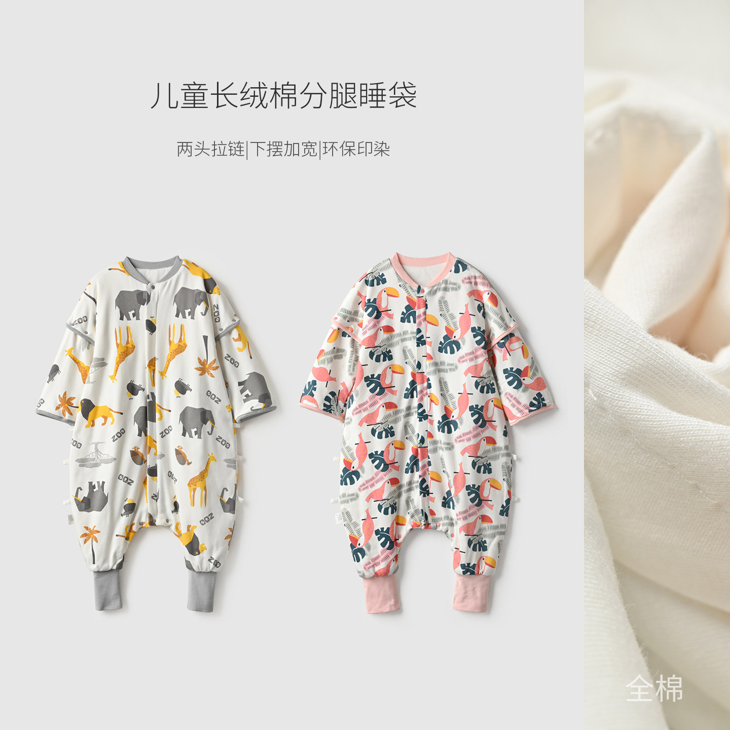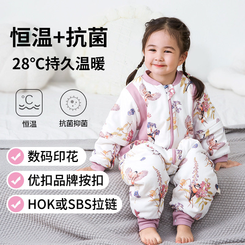 澳洲长绒棉 恒温棉儿童分腿睡袋 婴儿宝宝防踢连体睡衣 秋冬款