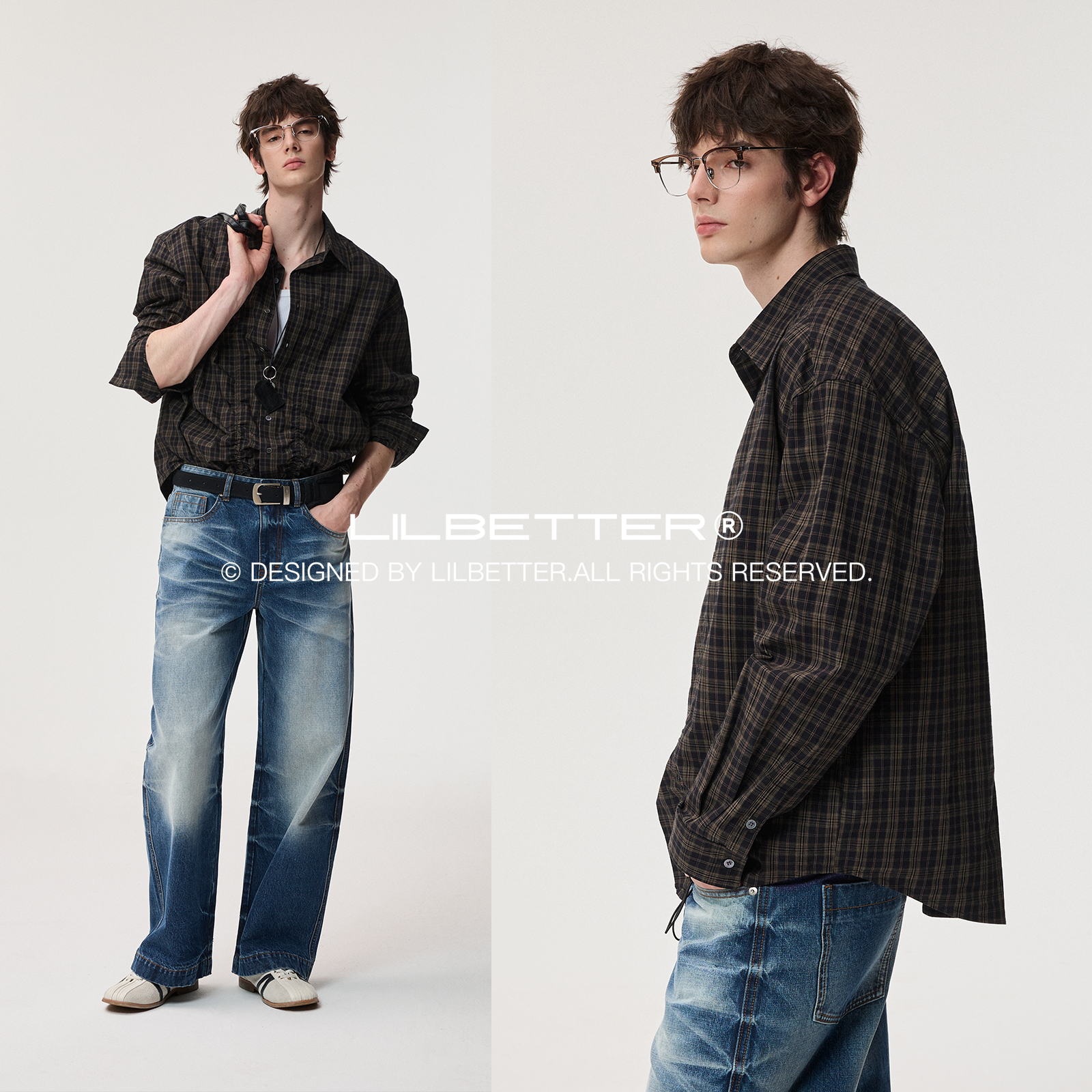 Lilbetter复古美拉德风全棉格子衬衫2025冬男士休闲通勤长袖寸衫