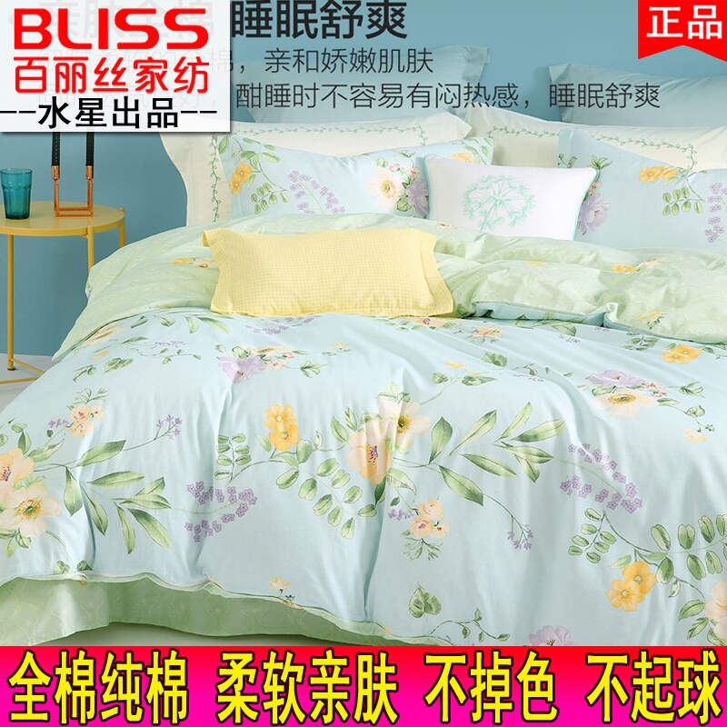 水星家纺床上用品全棉四件套100%纯棉床单被套被罩床笠学生宿舍